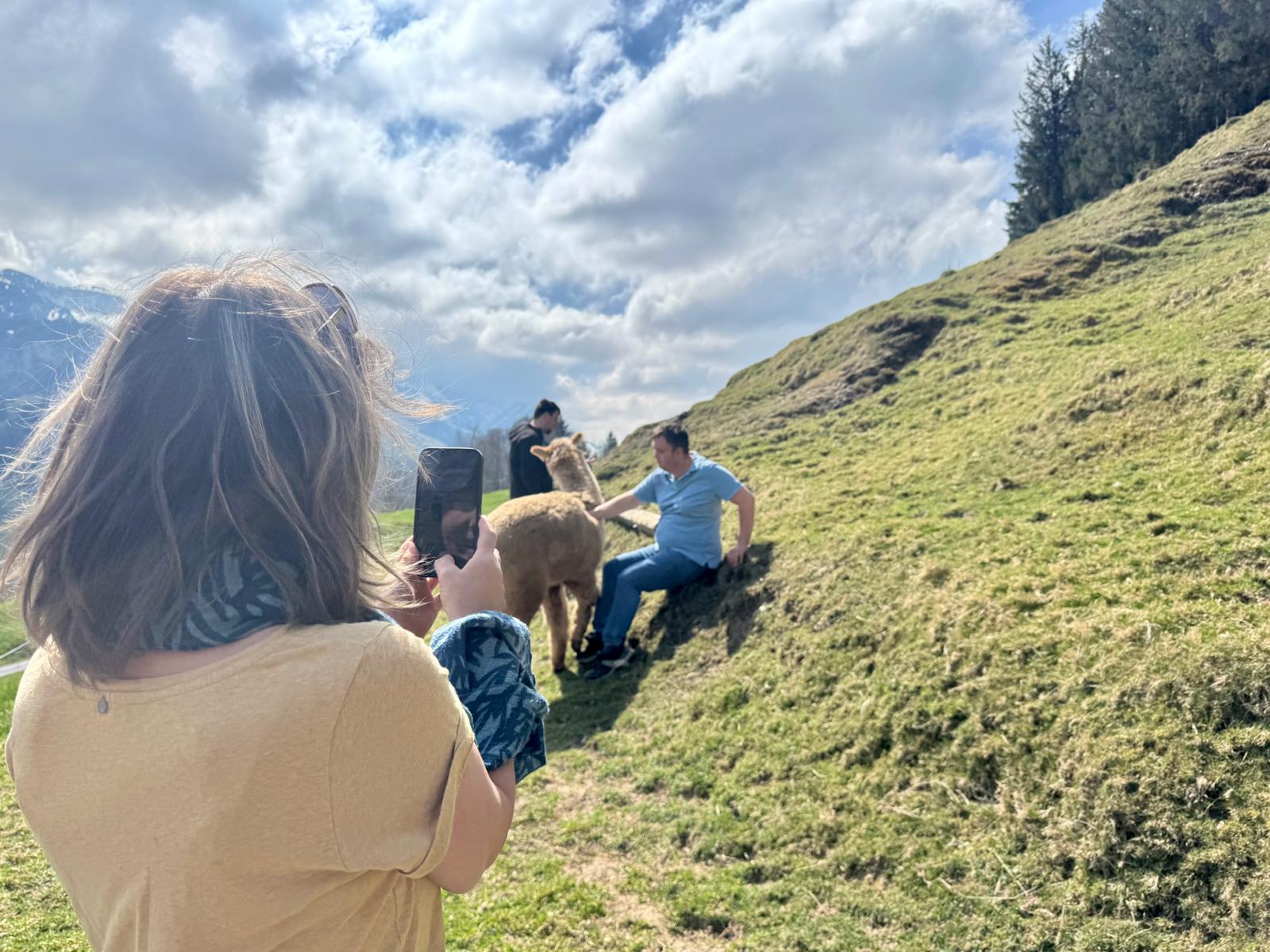 Bei traumhafter Aussicht wurden wir mit leckerem hausgemachtem Kuchen und Kaffee verwöhnt. Besonders spannend war der direkte Kontakt mit den Alpakas im Gehege- ein echtes Erlebnis. Ausserdem bekamen wir interessante Einblicke in den Alltag auf dem Hof.
