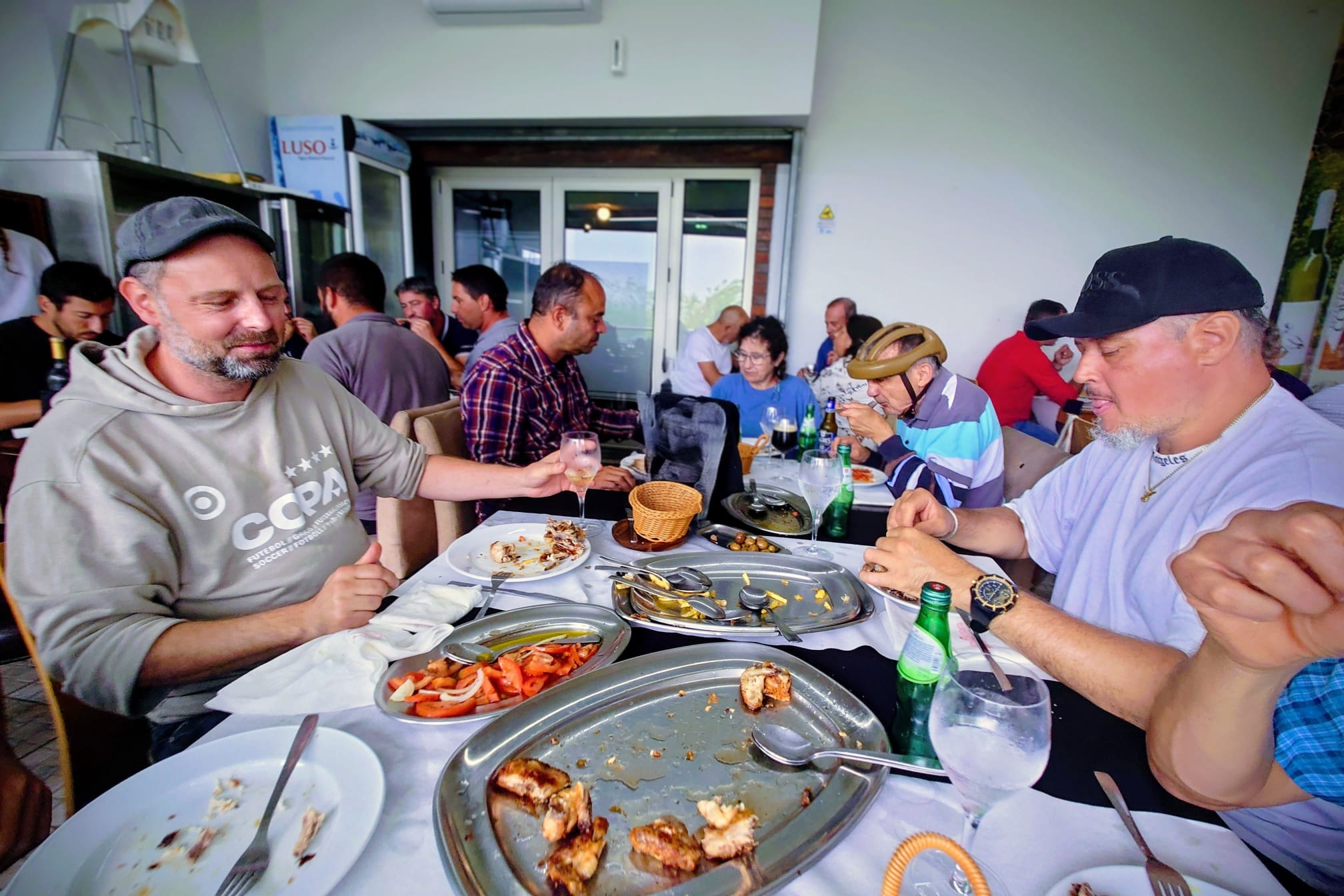 Auf nach Portugal! Am Sonntagabend, 7. September fuhren wir mit unserem Oase-Bus zum Flughafen Zürich. Unsere Portugalreise ging los und schon sassen wir im Flieger, alle etwas nervös aber voller Vorfreude. Zur späten Stunde, also mitten in der Nacht, sind wir im schönen Ferienhaus angekommen. Das Haus mit Garten befindet sich in unmittelbarer Nähe des Meeres. Den Montag nutzten wir um auszupacken und in unserem Ferienhaus anzukommen. Am Dienstag erkundeten wir die Stadt Aveiro. Aveiro ist mit Kanälen durchzogen und bekannt für den Salzabbau in den Salinas. Wir fuhren mit dem Boot zur Austern-Insel, wo die Austern gezüchtet werden und von einigen von uns auch gegessen wurden. Zum Glück für die meisten unserer Gruppe gabs auch Pommes und Salate. Am Mittwoch stand der Ausflug zum Schloss „Bussaco“ in der Nähe der Mineralquelle Lusso auf dem Programm. In dem besten Poulet-Restaurant in der Umgebung gab es essen und trinken in Hülle und Fülle. Auch zu erwähnen ist der sehr gute Spumante in dieser Region. Den Donnerstag nutzen wir um das Douro-Gebiet zu erkunden. Von dort kommt der bekannte Portwein und die guten Douro Weine her. In Lamego ging es wiedermals in eine Tapasbar um feinen Schinken und andere Köstlichkeiten kennenzulernen. Zurück im Ferienhaus ging es dann leider schon wieder ans einpacken und zusammenräumen. Am Freitag stand der Rückflug an. Zum Abendessen waren wir alle gesund und munter zurück in der Oase. Schön war`s!